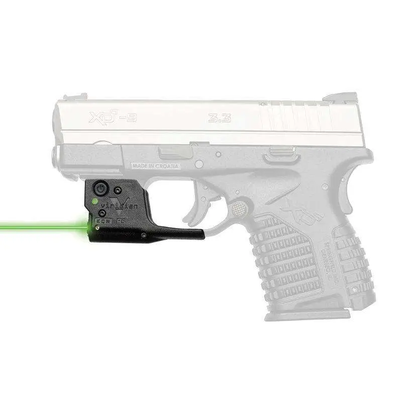 The Viridian R5 Gen 2 green laser sighting system is easy to install and blends seamlessly into the trigger guard for invisible profile and smooth draw. Viridian's green lasers utilize a 510-532nm wavelength range creating an optimum target dot that is up to 50 times brighter than red lasers. The gen 2 models include 3X more battery life (up to 5 hours) and an INSTANT-ON ambidextrous, inside the waistband (IWB) holster with automatic laser activation. Made of microfiber, this holster is more comfortable and durable than the previous models. This model is compatible with Springfield XDS.