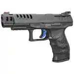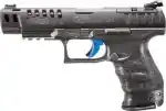 The Q5 Match from Walther is built for the production class competitive shooter. Built around Walther's award winning PPQ platform, the Q5 Match features an optics ready slide that comes with a Trijicon RMR, Leupold Delta Point, and Docter Optics ready mounting plate in addition to the standard competition iron sights already included. Coupled with a ported slide, Carl Walther signature ergonomics, and a blue quick defense trigger, the Q5 is the firearm that gives you match performance in a production class firearm. This model comes with a 10-round magazine.