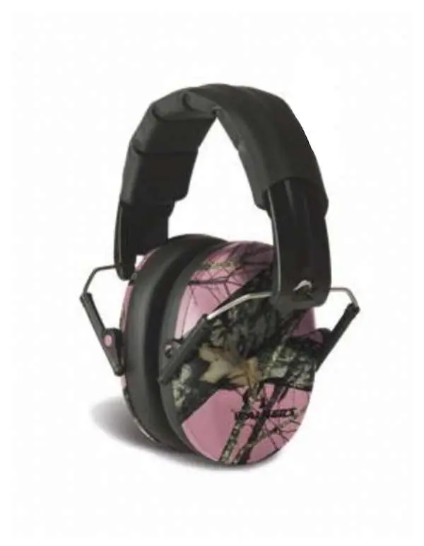 This model is black with Mossy Oak pink camouflage ear cups.