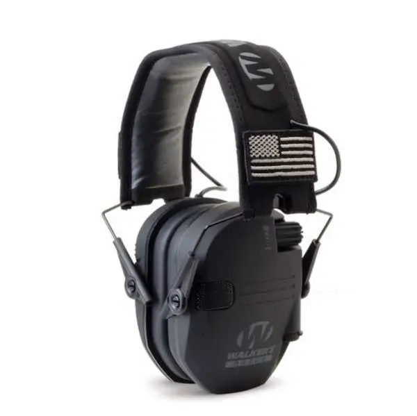 Walkers GWPRSEMPAT Razor Patriot Polymer 23 dB Over the Head Black Ear Cups w/Black Band & Flag Electronic Muff