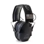 The Razor Electronic Patriot Muff Series has ultra low profile ear cups, two US Flag patches, and rubberized coating. It also has two Hi Gain Omni directional microphones, audio input jack, and a low noise/frequency tuned for natural sound clarity.