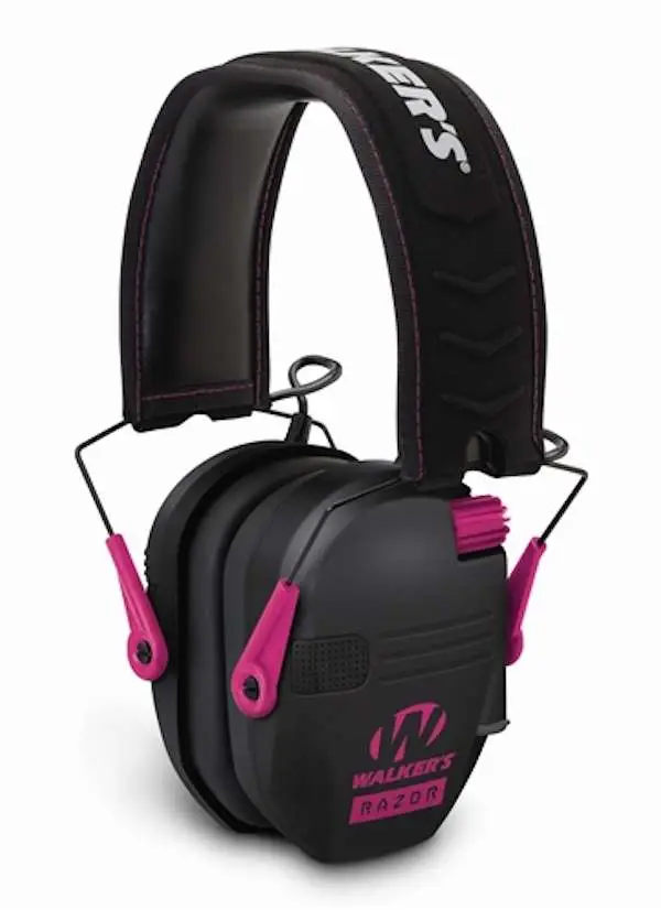 Walkers GWPRSEMPNK Razor Slim Electronic Polymer 23 dB Over the Head Black Ear Cups w/Black Badn & Pink Accents