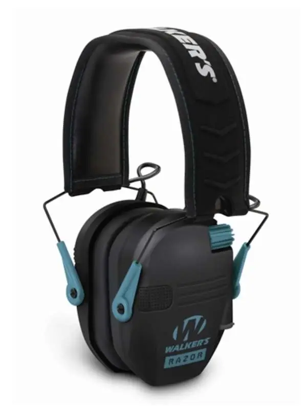Walkers GWPRSEMTL Razor Slim Electronic Polymer 23 dB Over the Head Black Ear Cups w/Black Band & Teal Accents