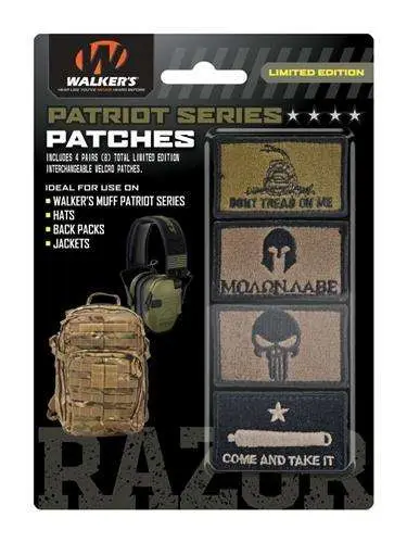 This Patriot patch kit feature 4 pairs of velcro patches: Don't Tread on Me, Moanaabe, Punisher, and Come and Take It (cannon).