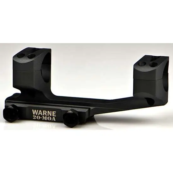 The LR-SKEL Mount offers 20 MOA built-in slope for long range precision shooting. This allows additional elevation adjustment in your optic when shooting ranges over 600 yards. The LR-SKEL Mount is CNC precision machined from 6061 aluminum and weve been able to reduce the weight by over 30%, compared to our R.A.M.P. Mount by utilizing a skeletonized body and ring caps. The LR-SKEL provides an additional inch of forward cantilever, compared to the original SKEL Mount to provide proper eye relief when using scopes with large eye boxes and gives extra space behind the mount for accessories like the Warne A645 45 side mount adapter.