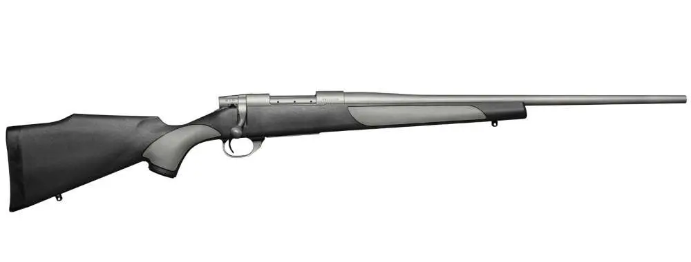 Weatherby's Vanguard rifles are guaranteed to shoot a 3-shot group of .99" or less at 100 yards (SUB-MOA) from a cold barrel when used with Weatherby factory or premium ammunition. Vanguard rifles are equipped with a match quality, two-stage trigger (adjustable down to 2.5 lbs.) and a 3-position safety, with the middle position allowing the shooter to work the action while safety is still engaged. The Vanguard action incorporates a one-piece machined bolt body, fluted for reduction in weight and bearing surface area, while eliminating binding for smooth action. Three gas ports allow high-pressure gases to escape laterally in the event of an accidental case rupture, and the massive M-16-style extractor ensures reliable and positive extraction. Vanguard rifles have a one-piece machined receiver featuring an integral recoil lug for the utmost in strength and structural integrity, along with a one-piece trigger guard with a hinged floorplate for easy access to unfired cartridges in the magazine. The Vanguard Weatherguard offers Cerakote protection. Its composite Monte Carlo Griptonite stock features pistol grip and forend inserts and a right side palm swell to aid in control and shooter comfort. The chrome-moly metalwork has a Cerakote Tactical Gray finish for exceptional weather and corrosion-resistance, including the cold hammer-forged barrel with #2 contour.