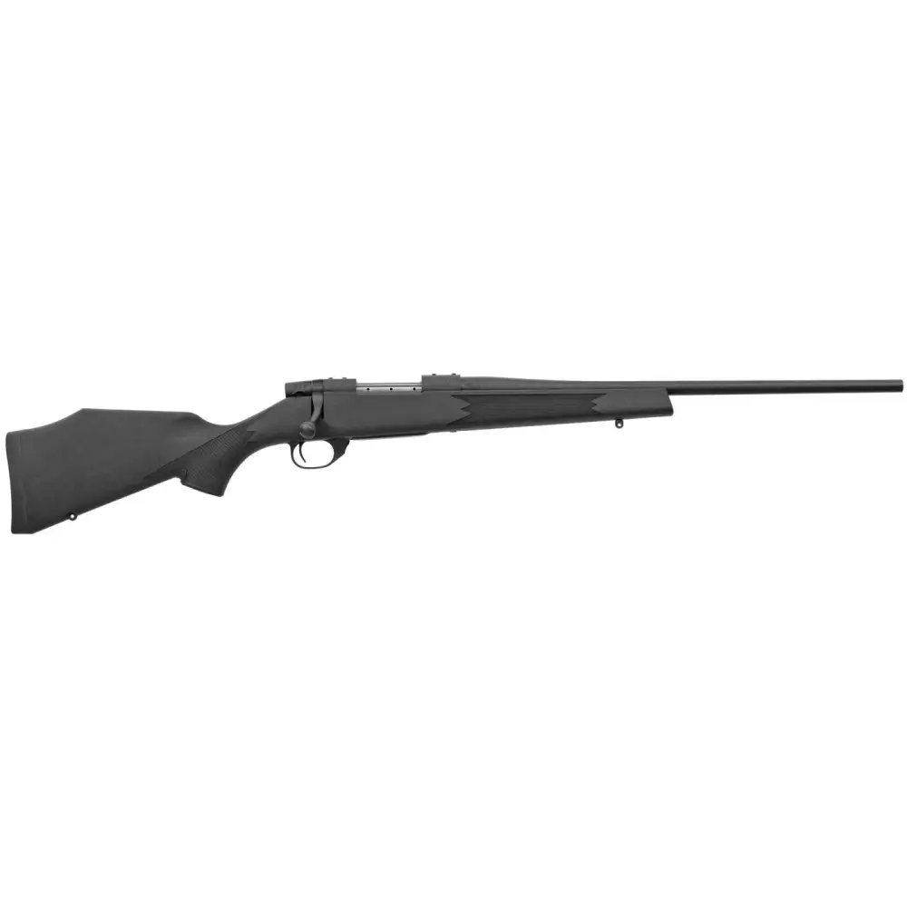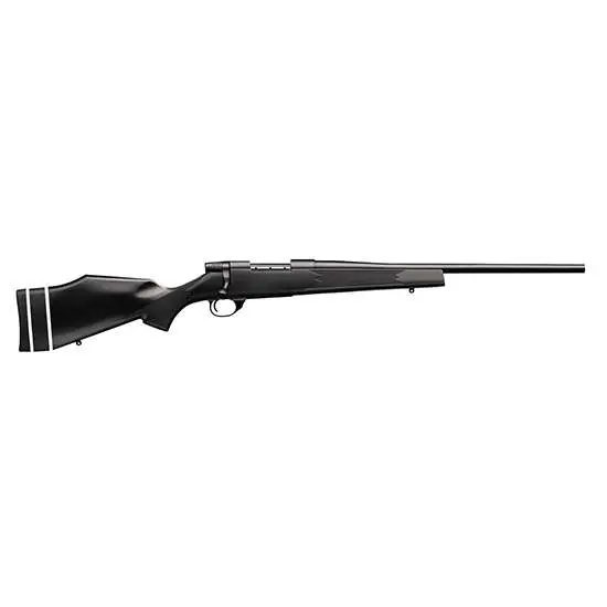 Weatherby's Vanguard rifles are guaranteed to shoot a 3-shot group of .99" or less at 100 yards (SUB-MOA) from a cold barrel when used with Weatherby factory or premium ammunition. Vanguard rifles are equipped with a match quality, two-stage trigger (adjustable down to 2.5 lbs.) and a 3-position safety, with the middle position allowing the shooter to work the action while safety is still engaged.The Vanguard action incorporates a one-piece machined bolt body, fluted for reduction in weight and bearing surface area, while eliminating binding for smooth action. Three gas ports allow high-pressure gases to escape laterally in the event of an accidental case rupture, and the massive M-16-style extractor ensures reliable and positive extraction. Vanguard rifles have a one-piece machined receiver featuring an integral recoil lug for the utmost in strength and structural integrity, along with a one-piece trigger guard with a hinged floorplate for easy access to unfired cartridges in the magazine. The Synthetic Compact model features composite Monte Carlo stock with a removable elongated spacer to adjust length of pull (12.5" to 13.625") and a 20" #1 contour barrel a bead blasted matte blued metal finish.