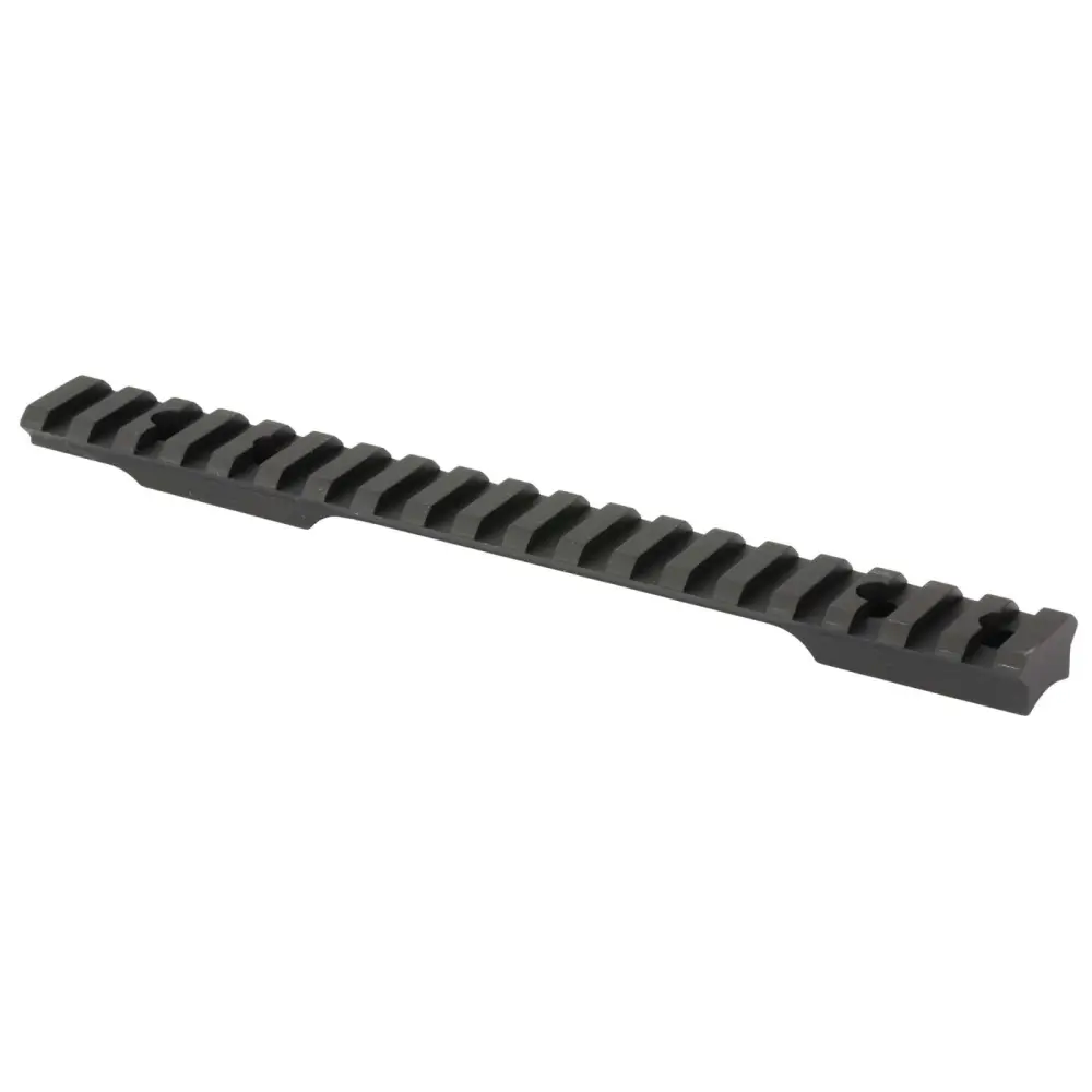 Enjoy optical superiority with our new Tactical Multi-Slot Bases. These Picatinny bases are designed for specific models of firearms and provide an additional 1 inch of forward length for more mounting options. Manufactured from 6061 T6 aluminum and protected by a matte, Type III hard coat anodized finish, these multi-slot bases are compatible with Picatinny or Weaver style rings. An integral recoil lug, no slip/strip Torx screws round out the features of these tactical bases. Fits Savage Target long action tactical rifle and has a 20 MOA (8-40).