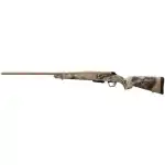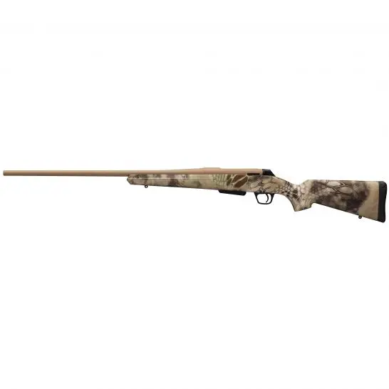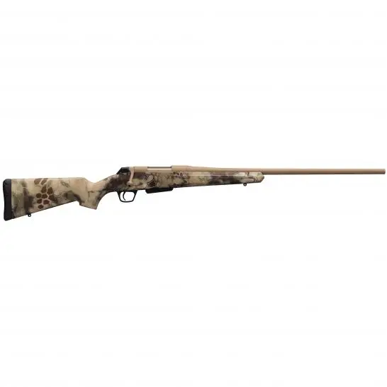 The XPR is a rugged, reliable and precise bolt-action rifle built for the next generation of Winchester hunters. Combining proven concepts from the Model 70 with more efficient manufacturing processes means that the XPR is a superb hunting rifle at a more affordable price. The advanced polymer stock is built for superior grip in wet conditions, and will stand up to scratches and bumps. The barrel has a tough, non-reflective finish and a recessed target crown. The receiver is drilled and tapped for beefy 8-40 screws. The XPR has a detachable box magazine, Inflex Technology recoil pad, M.O.A. trigger system, and a bolt unlock button. This model features a Permacote flat dark earth receiver and barrel finish and a synthetic Kryptek Highlander camoflauge stock.