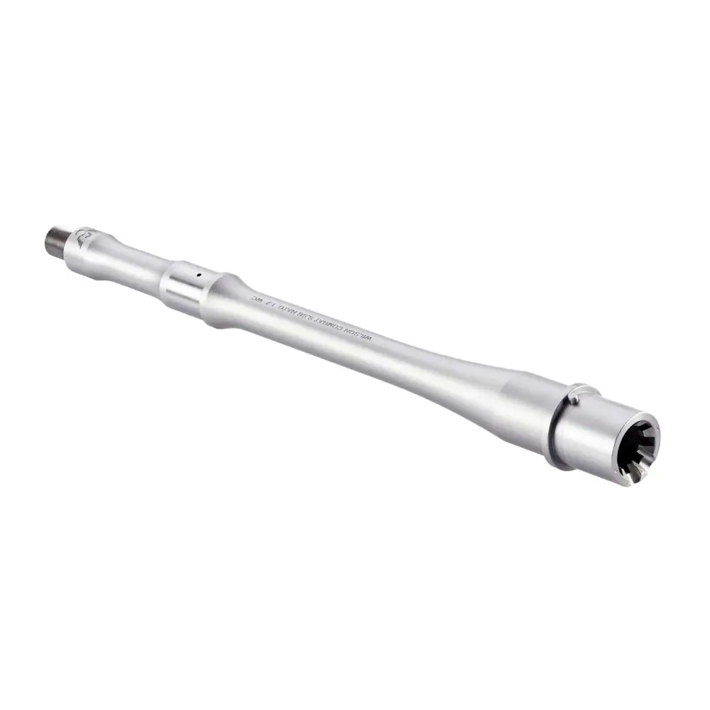 Wilson Combat's stainless steel, match grade barrel offers superior accuracy, reliability and longevity for your next custom AR rifle project. It is precisely crafted of the finest American-made 416R rifle rated steel on computer controlled equipment to exacting list of technical specifications. The barrel features a hand-polished bore and feedramps, crisp CNC markings, precision muzzle crown and a chamber and gas port optimized for reliability.