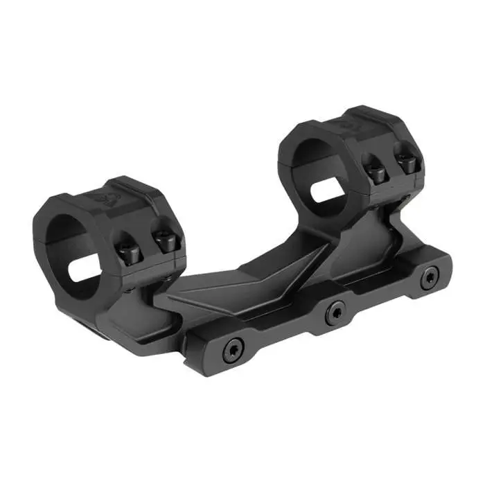 The Wilson Combat V3 Ultralight AR scope mount has been designed to be the most rugged lightweight AR scope mounting solution available. At Six Ounces, the V3 is light enough for all-around tactical and hunting use and the V-beam construction and triple mounting bolts ensure that it will stand up to the hardest kicking AR rifle cartridges. Precisely machined of 7075 aluminum with a satin anodized finish, the V3 has a compact 5.25" long footprint with a rail to center ring height of 1.5" that is ideal for most tactical scopes with up to a 50mm objective lens. The semi-extended offset is long enough to get proper eye relief for most tactical scopes while avoiding the scope damaging tuning fork action of long cantilever mounts. The hardened triple mounting bolts and rail lug allow for 4 points of contact and impressive clamping forces far beyond that of any QD mount. The V3's corrosion resistant stainless T15 ring and clamp screws are fully hardened and black oxide coated. The precisely bored rings require no ring lapping for perfect scope installation.