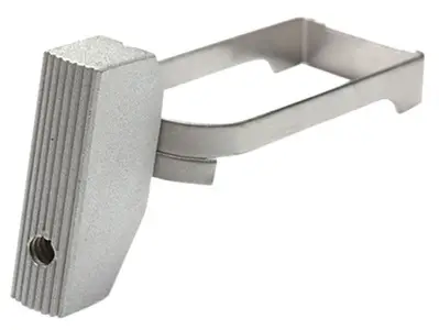 The Ultralight Match Trigger is used by the Wilson Custom Shop to produce some of the world's finest 1911 Autos. It weighs just over 90 grains. The pad is machined from aircraft grade aluminum with a serrated front and features the Wilson Combat three-hole skeletonized design. The bow is hardened stainless steel and is polished to reduce bow to frame friction. It has an adjustable over travel screw for precision adjustment. Minor fitting is required. The Ultralight trigger is an absolute necessity for a light yet safe competition trigger job or to produce the ultra-crisp trigger pull that Wilson "Tactical" pistols are noted for. It has a low luster silver matte finish. NOTE: Wilson Combat triggers are skeletonized to reduce "trigger bounce" which is rough on a fine trigger job and downright dangerous with a very light trigger pull.