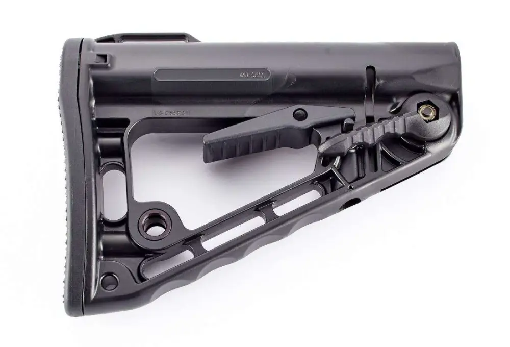 Wilson Combat's Rogers Super-Stoc is the ultimate refinement in AR/M4 stock technology. It features the innovative Cam-Lock System which completely removes any slop or play inherent with collapsible stocks. The stock can be locked down by clicking the cam-lock lever upward, while pressing the quick-release lever will disengage both the cam-lock, and the detent pin, allowing you to quickly readjust the stock position. The Super-Stoc also will fit both a Mil-Spec sized buffer tube as well as a Commercial sized. It is among the lightest stocks available, but rugged enough to pass a 36", fully loaded drop test.