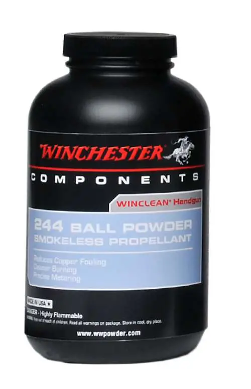 Winchester WinClean 244 is a ball powder developed for medium handgun loads. It is ideally suited to 38 Special, 45 Auto, and 9mm standard loads. Consistency, low flash, and a broad range of applications make this powder a choice for any handgun cartridge loader. Since it is a ball powder, it features precise metering. And with the WinClean additive, this powder is cleaner burning and reduces copper fouling.
