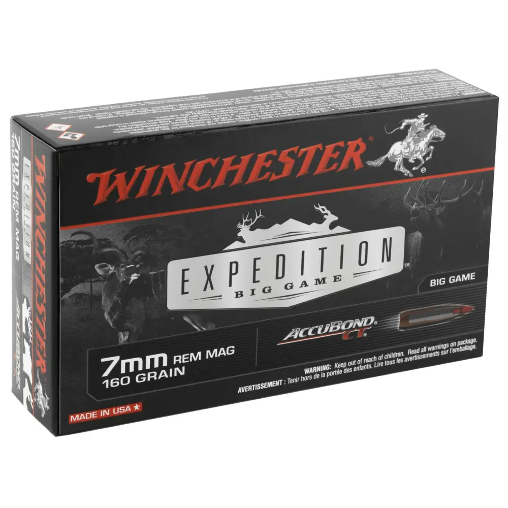 Flat shooting with pinpoint accuracy, Winchester Expedition Big Game Long Range uses the tough, deep penetrating Accubond Long Range bullet for supreme performance on the biggest game even at longer distances. Controlled expansion allows for penetrating thick hide and bone before delivering massive knock-down power. Expedition Big Game Long Range is an ultimate performance hunting load for wherever your dream hunt takes you