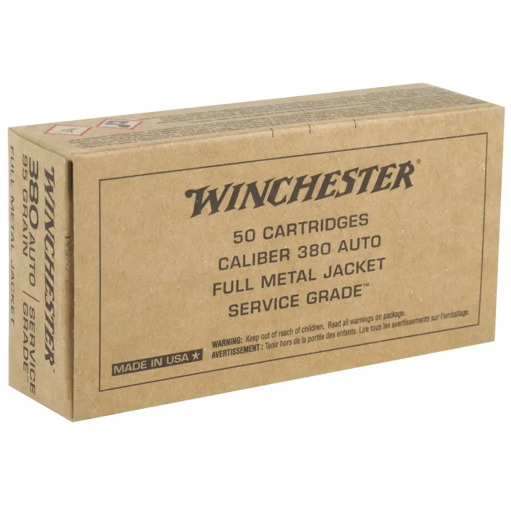 Winchester Ammo SG380W Service Grade 380 ACP 95 gr Full Metal Jacket Flat Nose (FMJFN) 50 Bx/ 10 Cs