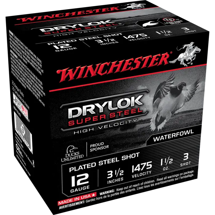 Winchester Ammo SSH12LH3 Drylock Super Steel High Velocity 12 Gauge 3.5" 1 1/2 oz 3 Shot 25 Bx/ 10 Cs