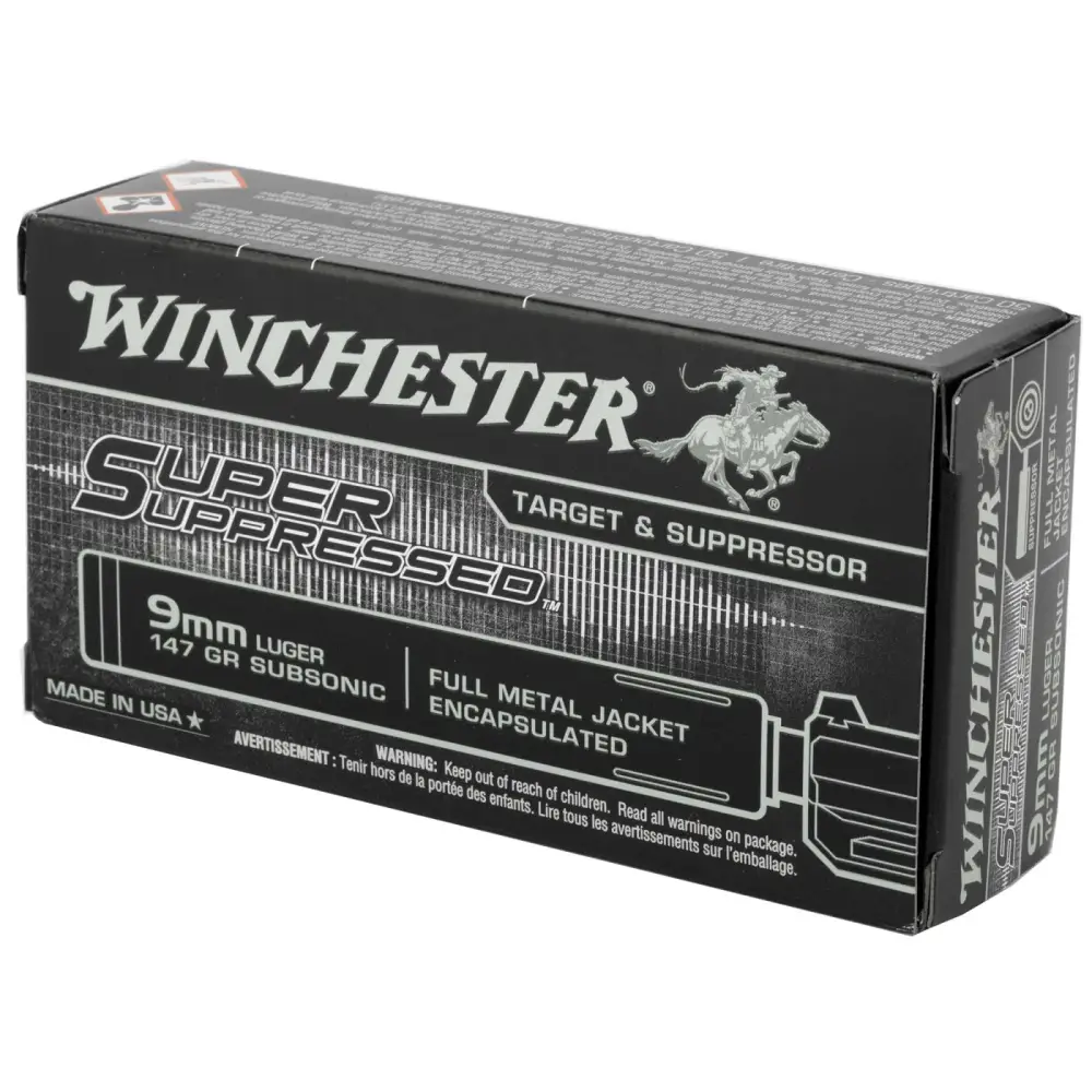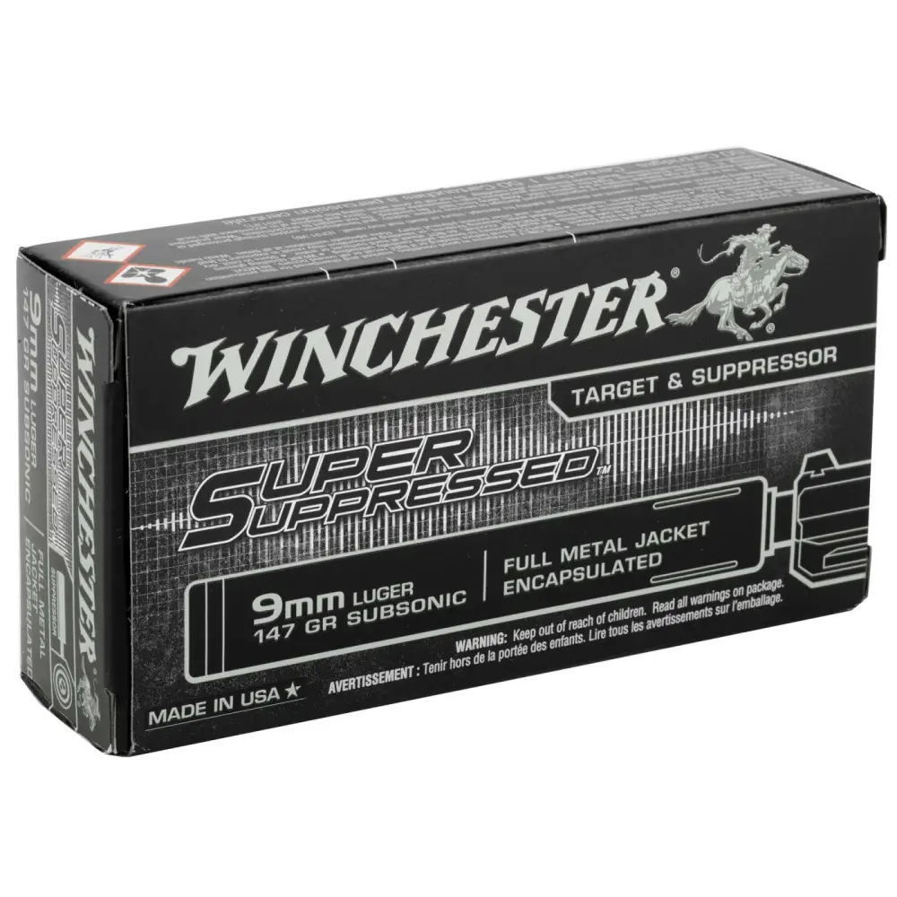Winchester Ammo SUP9 Super Suppressed 9mm Luger Subsonic 147 gr Full Metal Jacket (FMJ) 50 Bx/ 10 Cs
