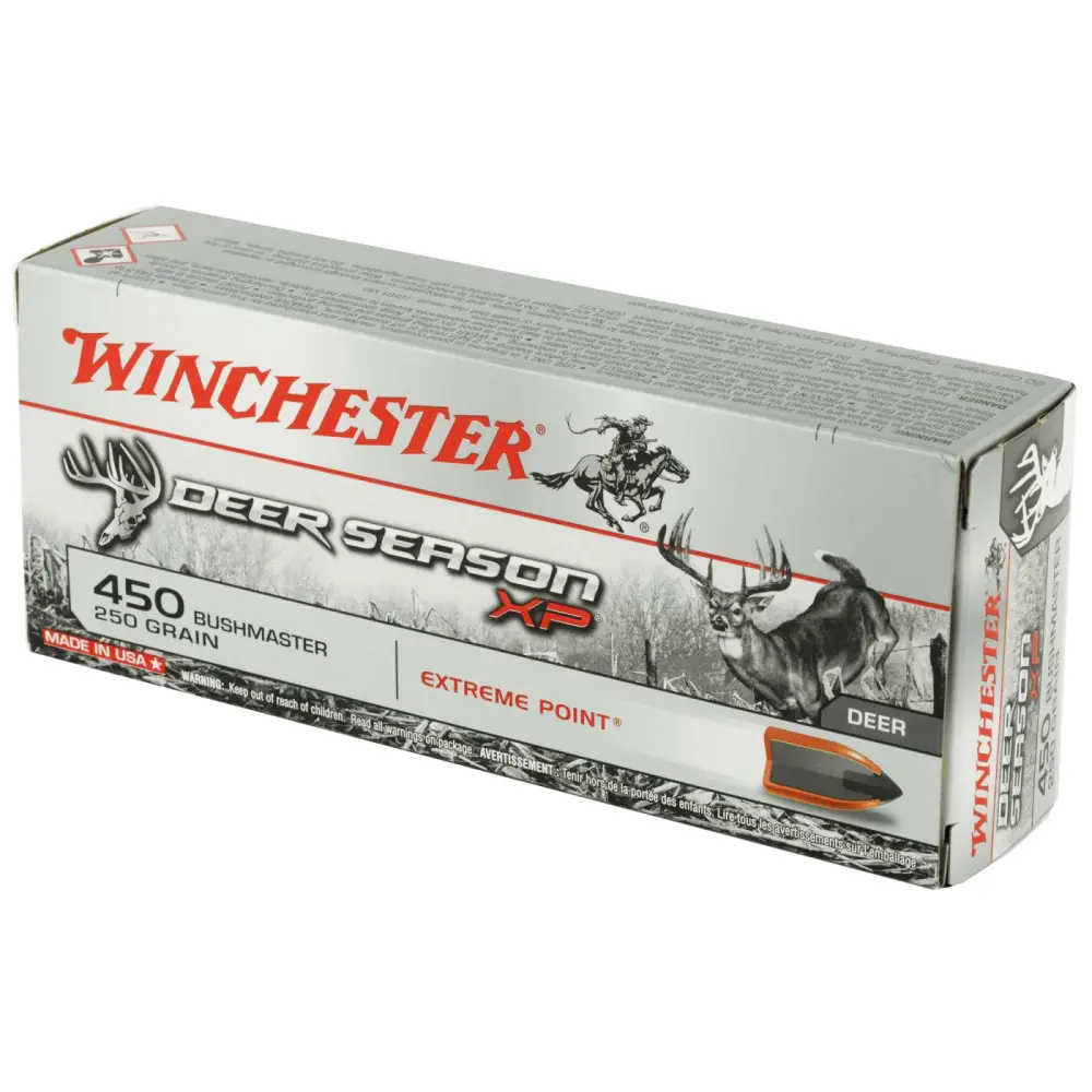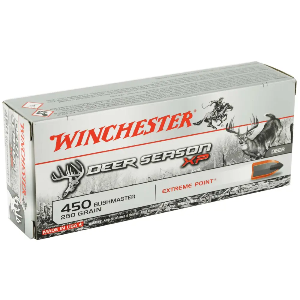 Deer Season XP combines decades of Winchester experience into the perfect choice for deer hunting ammunition. Accuracy, combined with massive bullet impact performance means that Deer Season XP is a great choice for all deer hunters. Suitable for use on Whitetail, Mule and Blacktail Deer.