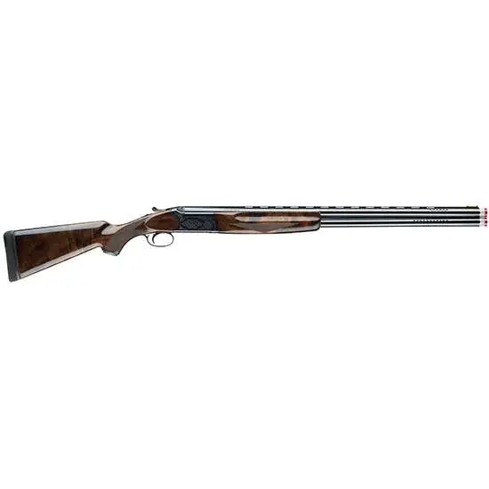 The Model 101 Sporting has a richly-blued receiver and authentic engraving framed by high gloss grade II/III walnut. An adjustable trigger allows for tuning length of pull. The Invector-Plus choke system comes with five Signature extended tubes. The lightweight, ported barrels and a Pachmayr Decelerator sporting pad, control recoil. The barrel features a 10mm runway rib, a white mid-bead, and a Truglo front sight to round out this feature-packed shotgun.