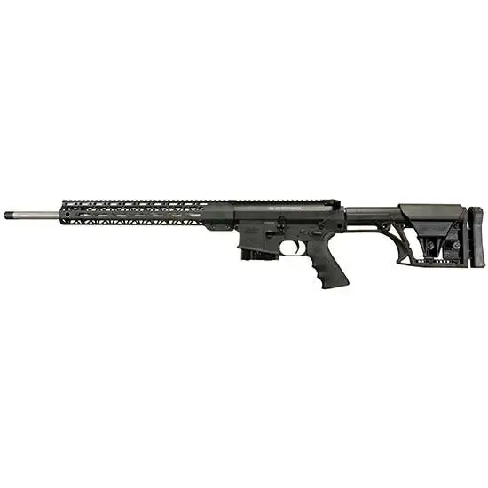 This R20 6.5 Creedmoor firearm features a black hardcoat anodized metal finish, 7075 T6 forged aluminum receiver, a 20" stainless steel fluted 416R barrel with a threaded muzzle, a black Luth-AR MBA-1 stock, and a 5-round magazine capacity.