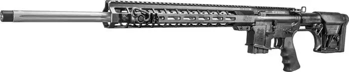 Windham Weaponry's R22 rifle features a flattop receiver forged from 7075 T6 aluminum with an aluminum trigger guard, and a manual lever safety with dual-sided indicator markings. It uses a gas impingement system, and features a fluted 416R stainless steel barrel with 1:7" twist, 1/2"x28 tpi threads, and a muzzle protector. This optic-ready rifle has a Windham's 15" free-float railed handguard, and Hogue beavertail pistol grip. It is fitted with a Luth-AR buttstock with an adjustable buttplate and cheekrest. This 224 Valkyrie model has a 22" barrel, black hardcoat anodized receiver with laser-engraved caliber identification, and black furniture. It includes one 5-round magazine, black web sling, and comes packaged in a hard plastic gun case.
