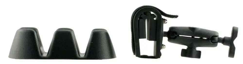 Easily, quickly mount holders to the strut or frame on a golf car style or utility shooting vehicle, to an ATV rack, to the frame of the rugged gear shooting cart, nearly any round or square bar up to 1" or larger than 1". Infinitely, adjustable ball and socket design allows holder to rotate to best position and lock into place. Models with floor base hold gun stock down or barrel down. U-bolt, screw mount or clamp mount are the different types of holders.