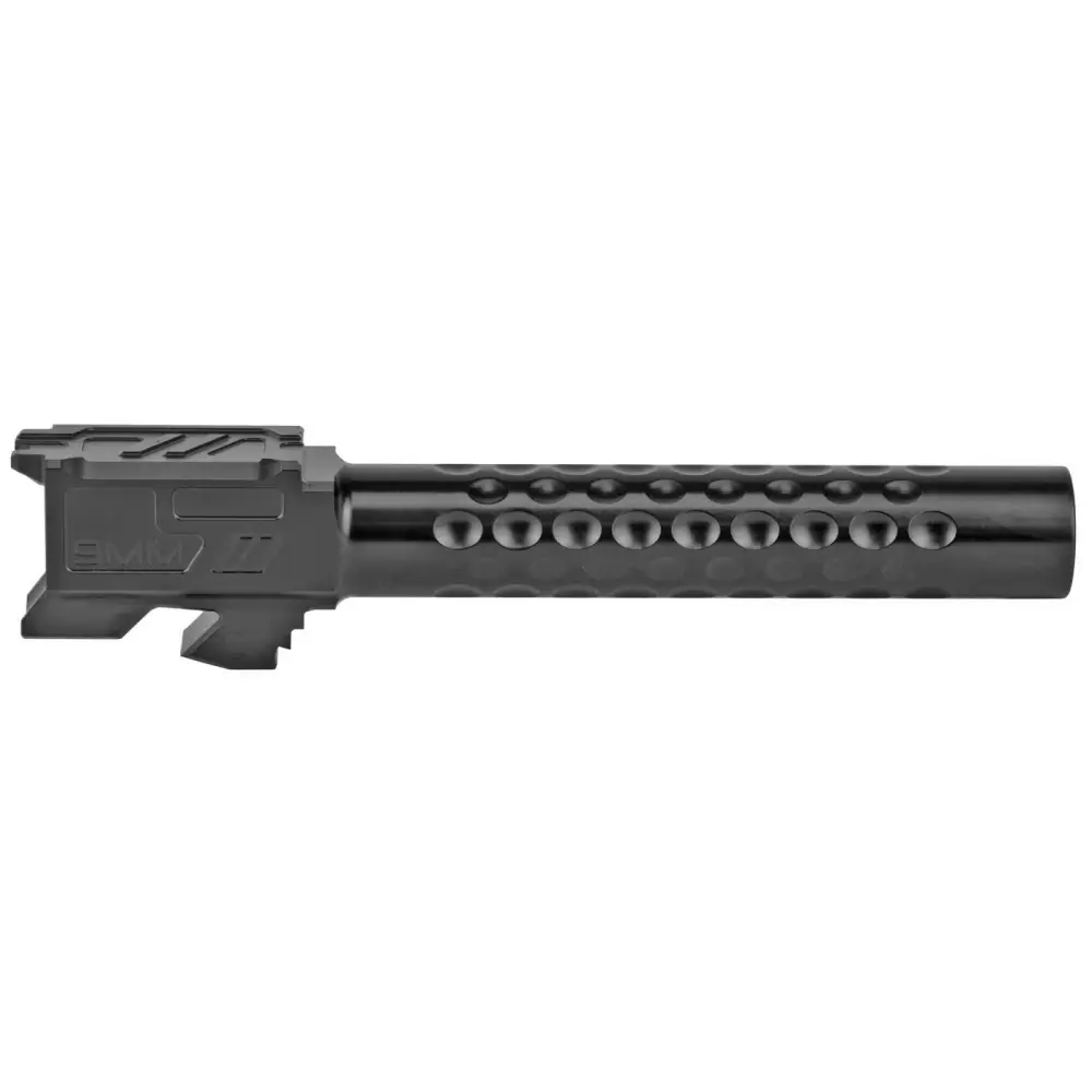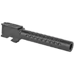 ZEV Technologies Optimized Match Barrels have been redesigned for improved performance and compatibility. Enhanced features include a recessed target crown, a new match chamber, and a stylized barrel hood with caliber and model engravings and a loaded chamber indicator. ZEVs proprietary broach cut 1 in 14 left hand twist rifling was developed to create the most accurate Glock aftermarket barrel available, and testing confirms a significant increase in accuracy over factory barrels in all standard bullet weights. Manufactured from 416R stainless steel which is an ideal material for making match grade barrels because the material allows for the precise cutting of chambers and rifling which results in a more accurate barrel.