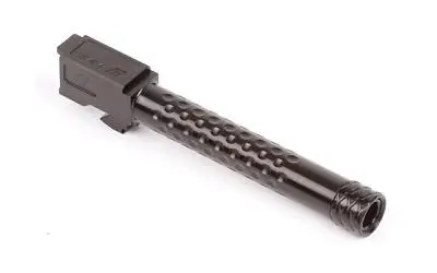 Zev Technologies Match Grade drop-in Glock replacement barrels are manufactured with pre-hardened chromium stainless steel (416R). This material provides high tensile strength and toughness to withstand typical chamber pressures while still being highly corrosion resistant. It comes packaged in a box with foam inserts.