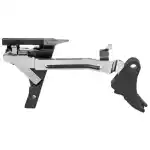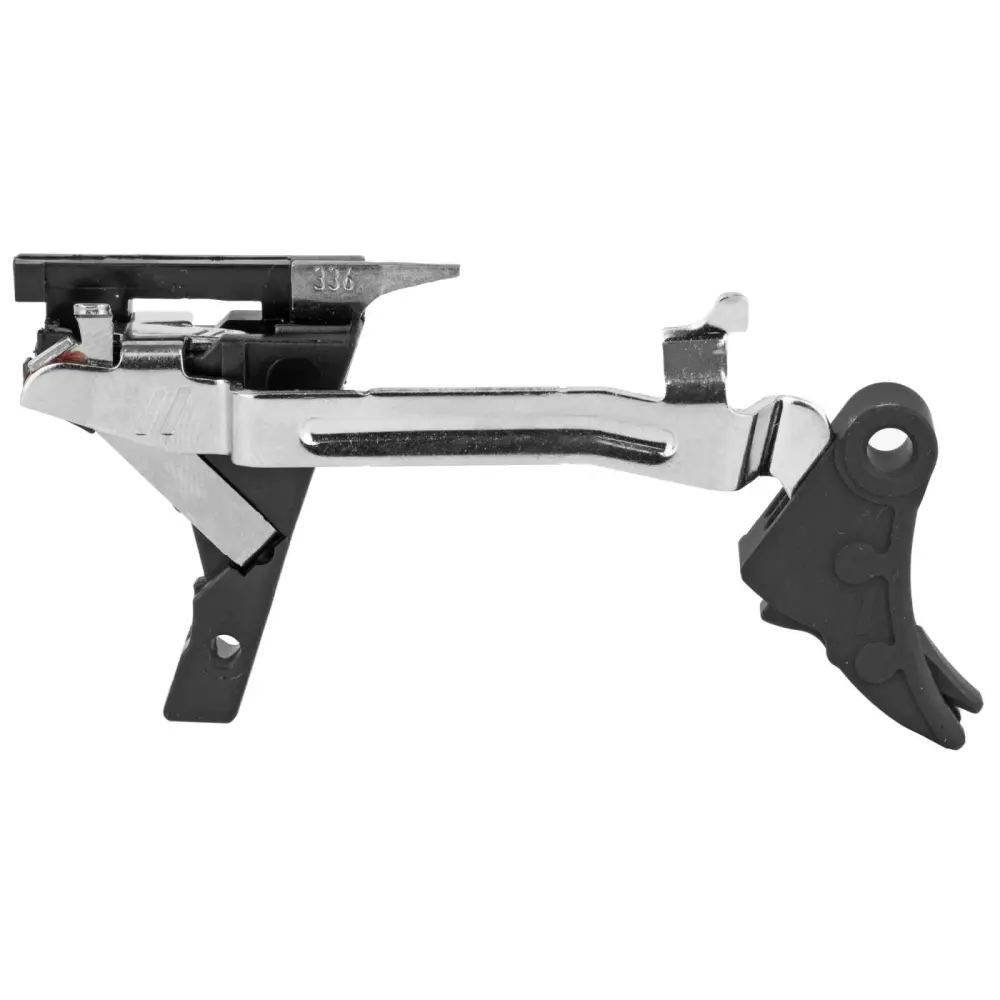 ZEV Technologies Pro Trigger is built from the ground up to perform better and more reliably than anything else on the market. At its core is a proprietary trigger bar and professional connector. This Ultimate model has a curved face riveted trigger and black housing and safety. It is compatible with G19/G17/G34/G26/17L Gen1-3. Included is a trigger bar, Pro connector, firing pin safety and spring, Pro striker spring, skeletonized striker, trigger spring, and ejector housing.