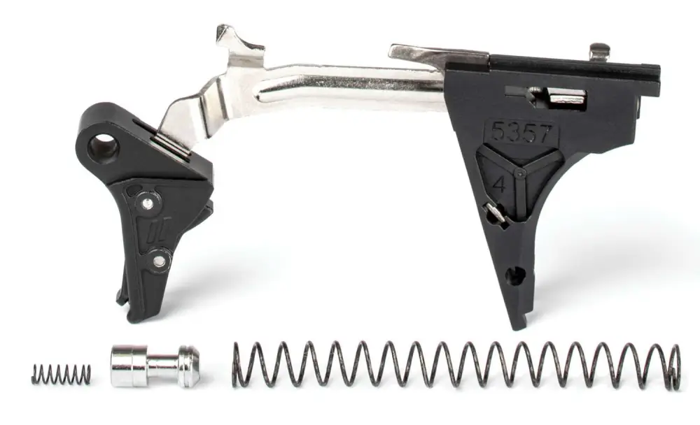 ZEV Technologies Pro Trigger is built from the ground up to perform better and more reliably than anything else on the market. At its core is a proprietary trigger bar and professional connector. This Drop-In model has a flat face riveted trigger and black housing and black safety. It is compatible with G17/G19/G26/G34 Gen4. Included is a firing pin safety and spring, Pro striker spring, trigger spring, and ejector housing.