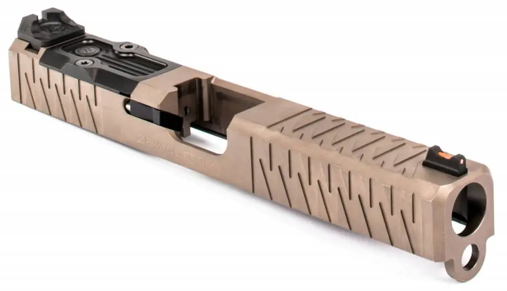 The Enhanced SOCOM Slide Kit is visually stylish and has angled front and rear serrations which offers plenty of grip. The small top serrations help to reduce glare. It is machined from 17-4 billet stainless steel and aluminum. The Enhanced SOCOM Slide Kit includes: stripped ZEV slide, fiber optic front/combat rear sight set, RMR adapter plate, stainless steel firing pin safety, firing pin safety spring, skeletonized striker, striker spring, and an aluminum back plate.