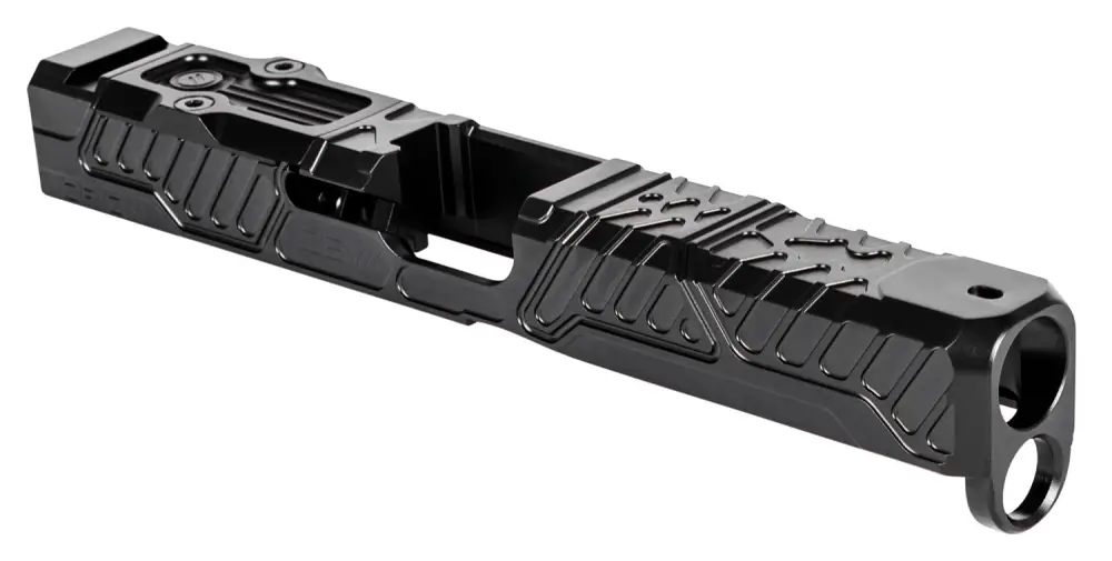 Zev Technologies Slide is designed with tighter tolerances to increase accuracy and performance. The Orion features a stylish pattern which provides an all-over non-slip grip. Rounded edged serrations are not overly aggressive and easy on the un-gloved hand. It is manufactured from a single billet of 17-4 stainless steel to tighter tolerances than factory slides for increased consistency in barrel lockup which improves accuracy. The Orion utilizes a patented optic cut and a lowered ejection port to aid in ejection of brass. Included is a RMR adapter plate. This model is compatible with Glock 17 Gen5 and has a black DLC finish.